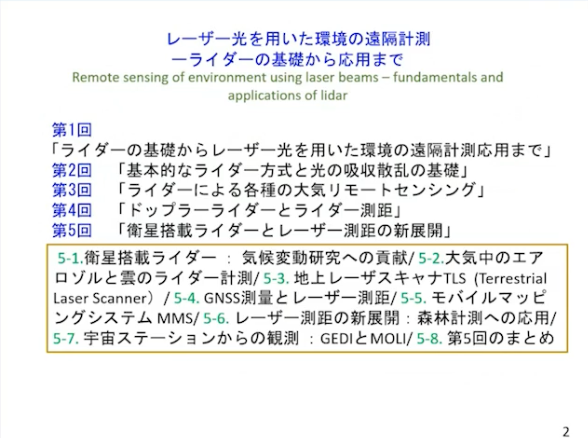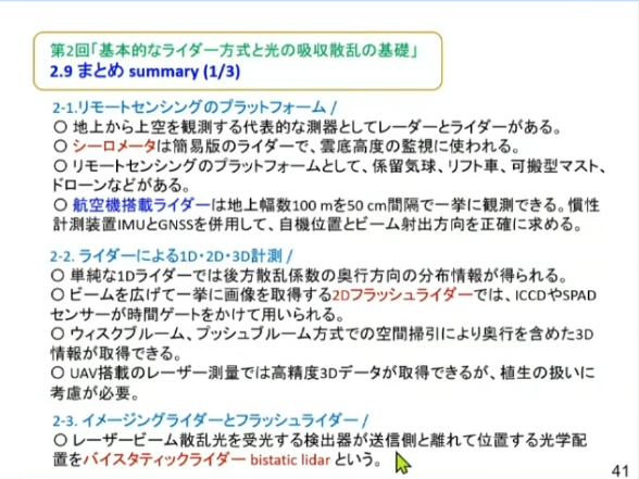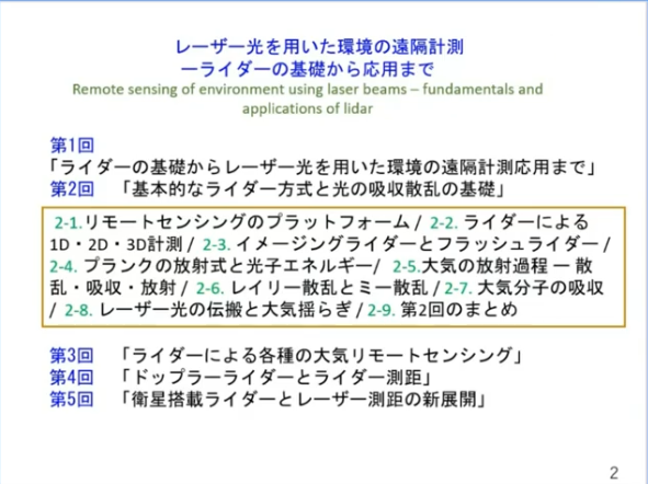 色んな分野にまたがって、その目的に応じたLIDARが使われています。そのためこの講義では広い立場から話が展開されることになります。