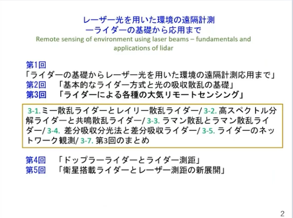 - ライダーの基礎からレーザー光を用いた環境の遠隔計測応用まで