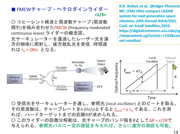 コヒーレント検波とですね、それから周波数チャープっていうのは時間に沿ってレーザー光の周波数を変えるということにあるわけですけども、それを組み合わせたFMCWライダーということになります。