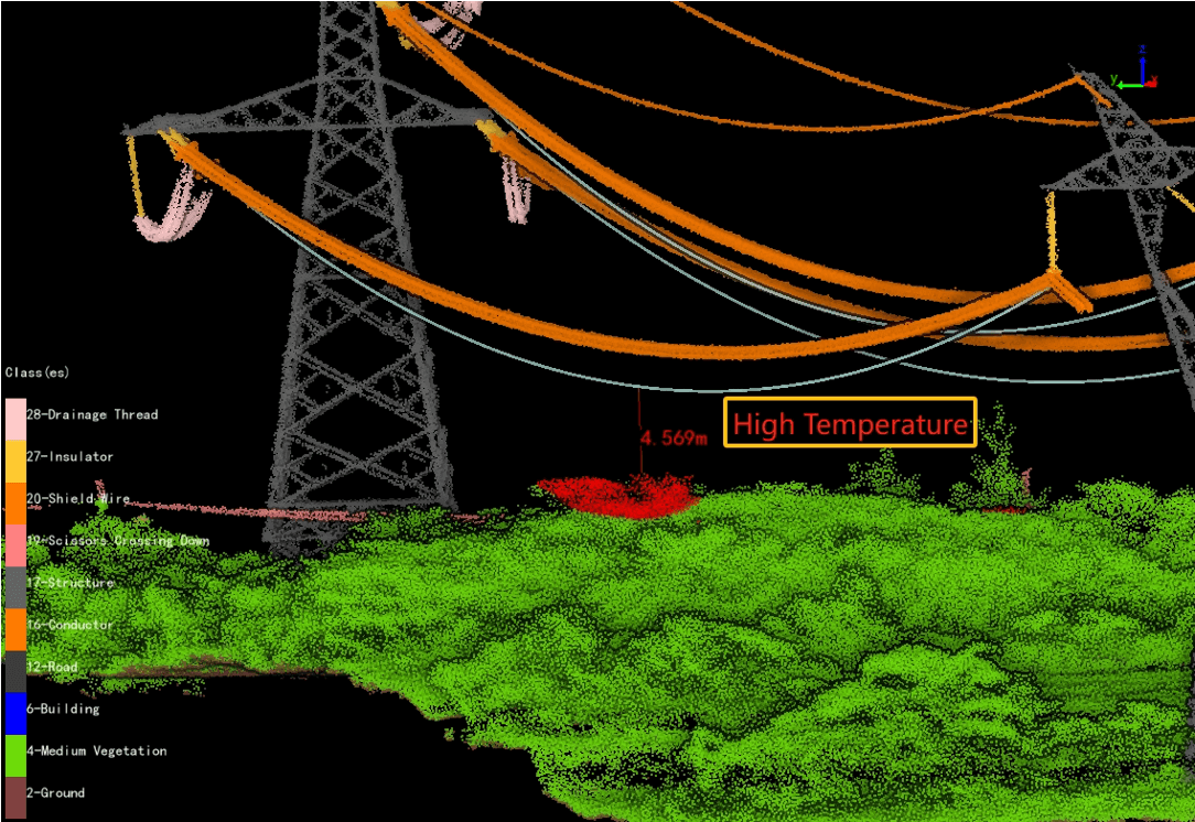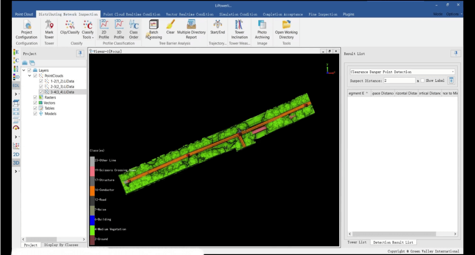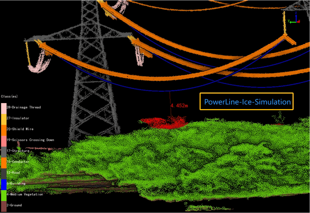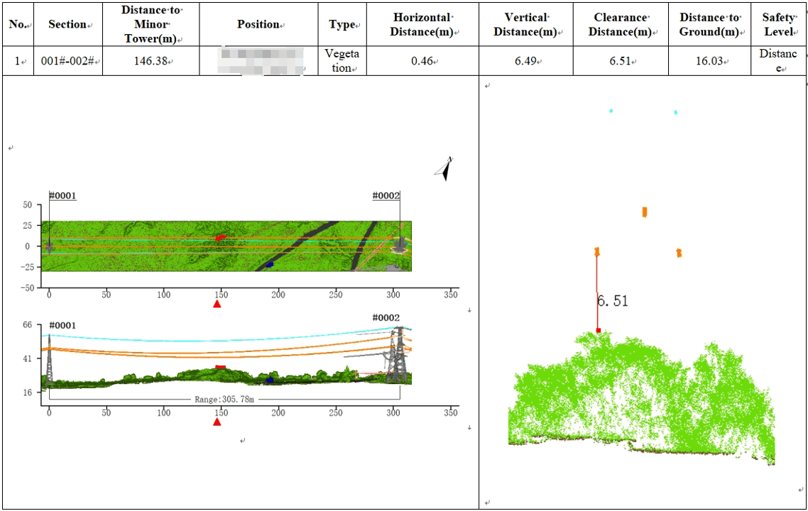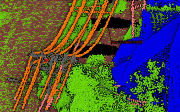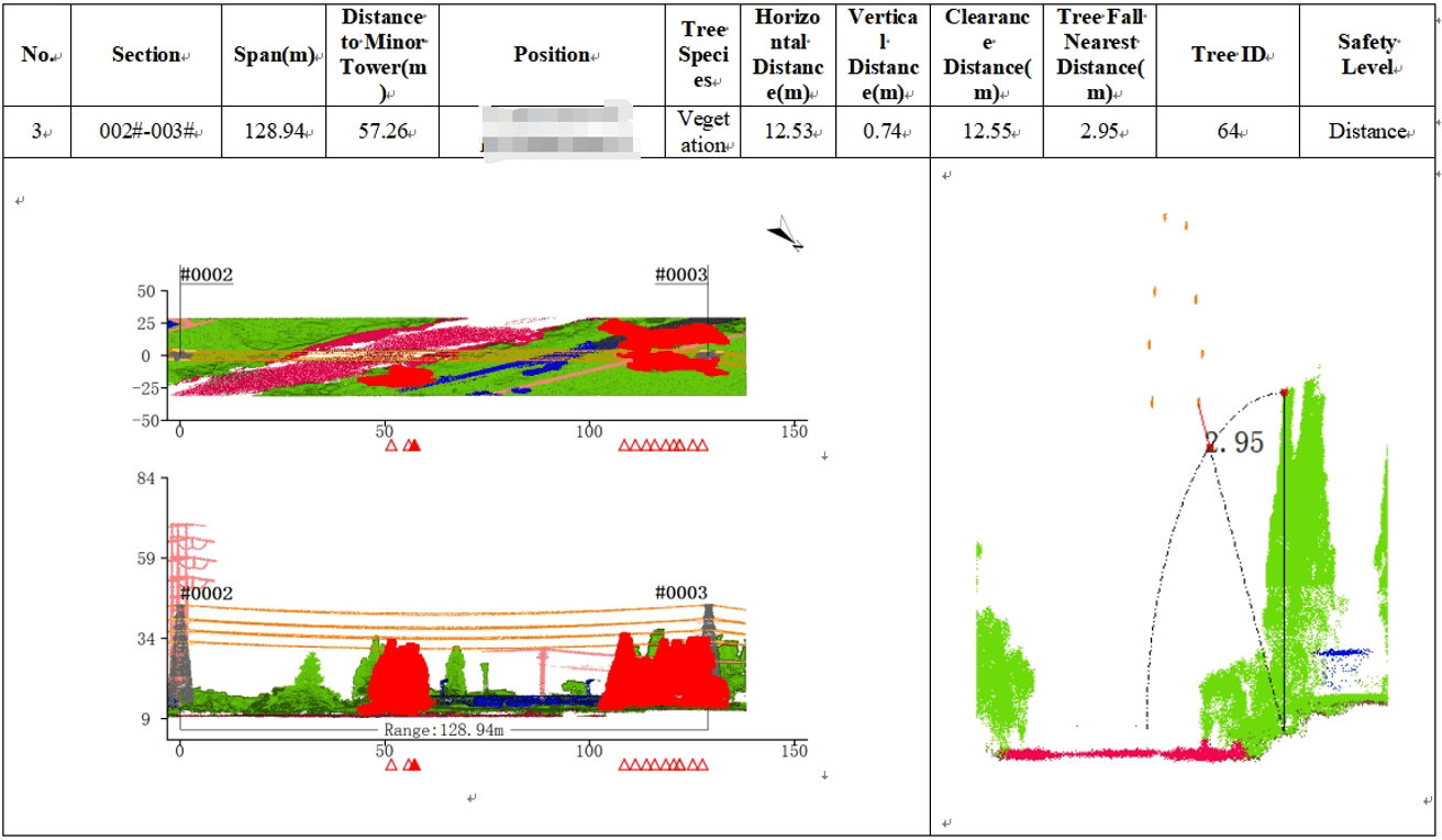 分類された点群データを用いて、電力線路におけるクリアランス危険点分析、交差分析、および樹木倒壊リスク分析を実施します。電力線路環境における潜在的な危険性を正確に評価し、詳細なレポートを生成します