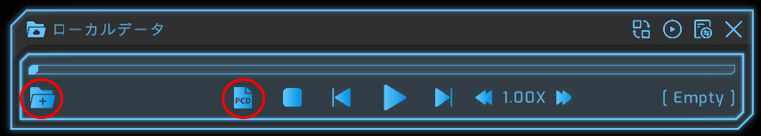 フォルダアイコンから点群ファイルを選ぶと再生が開始されます。