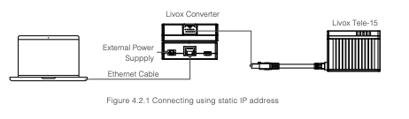 ・デフォルトゲートウェイ;192.168.1.1 - 初回使用時はLivox Tele-15をパソコンへ直接接続してください。静的IPと動的IPでは接続方法が異なります。