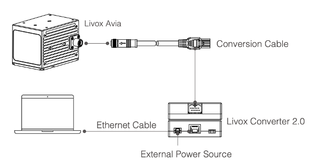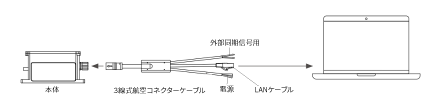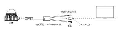 電源ケーブル、Livox 3線式航空コネクターなどの電源供給用ユニット、通信ケーブル ※ 3線式コネクタは通信(LANケーブル)を含む