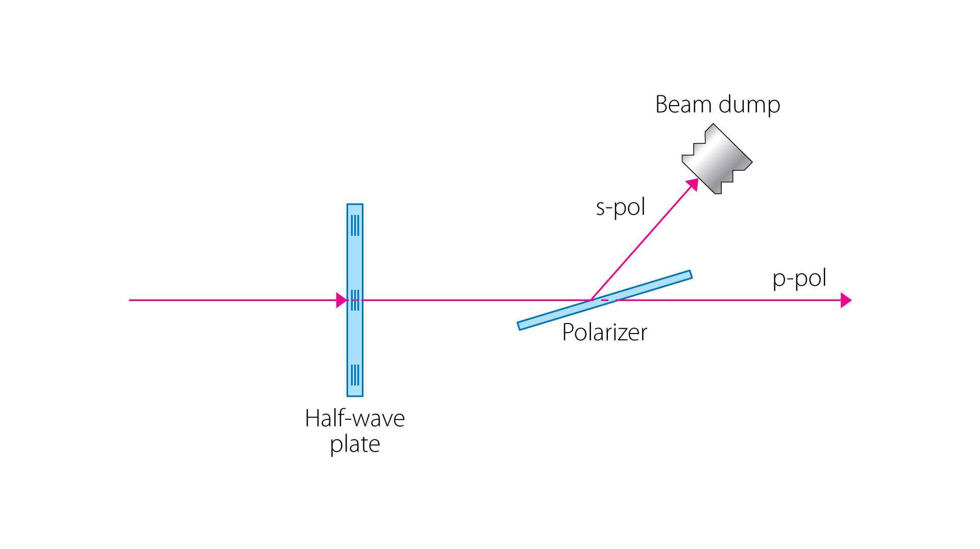 - レーザービームを調整可能な強度比の2つのs-polビームとp-polビームに分割します