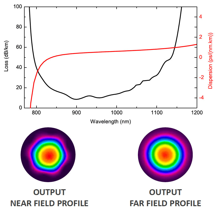 - 伝送帯域 (< 80 dB/km) : 700-1000 ± 50 nm