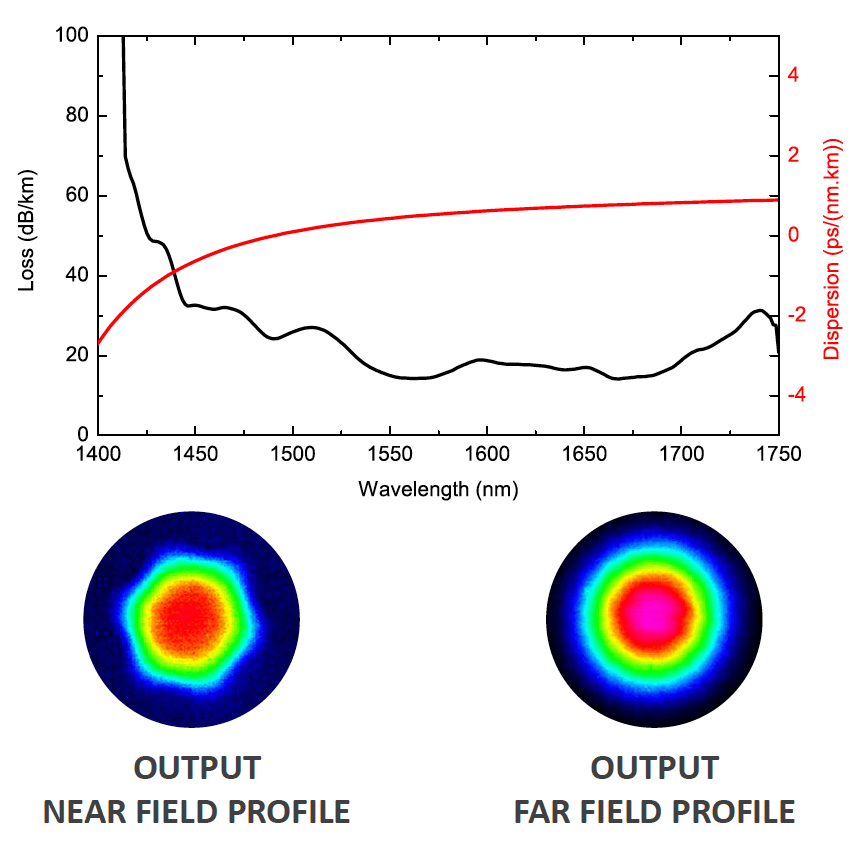 - 伝送帯域 (< 80 dB/km) : 1400-1750 ± 50 nm