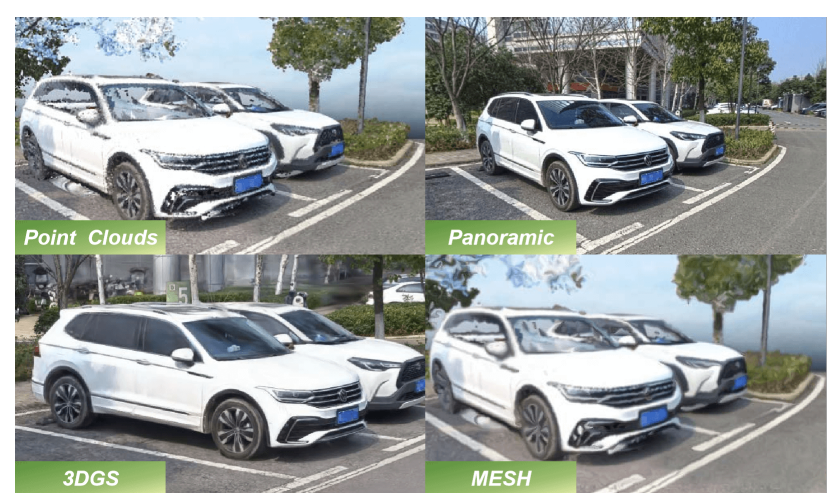 点群、パノラマ画像、3DGS、MESH 等を 1 回の収集で同時生成。