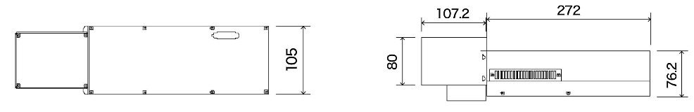 このコンパクトな筐体(W105 × D379.2 × H110 mm)に、コントローラー・電源を内蔵しており、設置スペースを大幅に削減することができます。AC100〜240 V電源に対応し、低消費電力(120 W以下)で運用できるため、最小コストでの設置・運用が可能です。