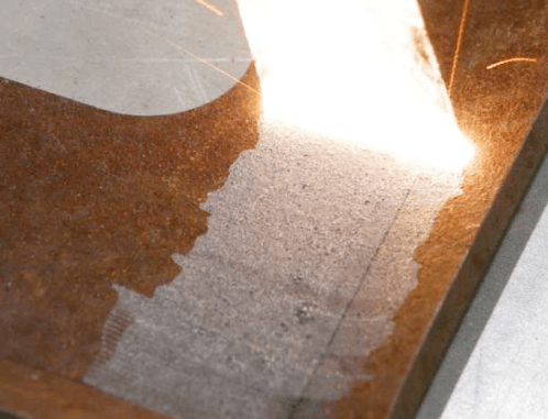 メガパワーレーザークリーナー3000でサビを除去している様子