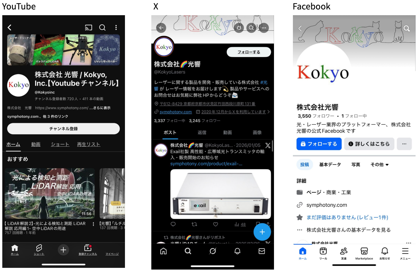 光響では、レーザー・光関連製品や技術情報、展示会やイベントの様子、日々の取り組みなどを、公式SNSを通じて発信しています。新たに開設したTikTokでは、短尺動画の特長を活かし、製品や技術のポイントを分かりやすくご紹介するコンテンツの発信を予定しています。