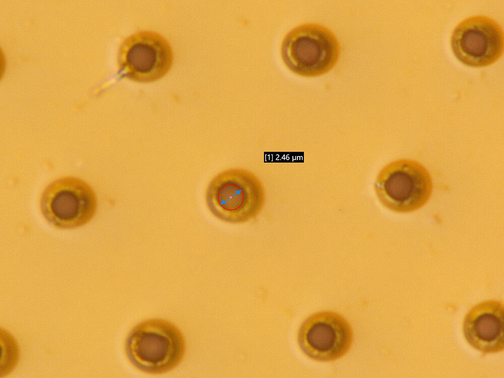 このページでは自社 超高精密フェムト秒レーザー加工機にて行った 微細穴加工 の加工結果を掲載しています。